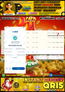 Deposit & withdraw kilat! Gak pake nunggu-nunggu lama, saldo langsung masuk. Cocok buat yang suka kecepatan!